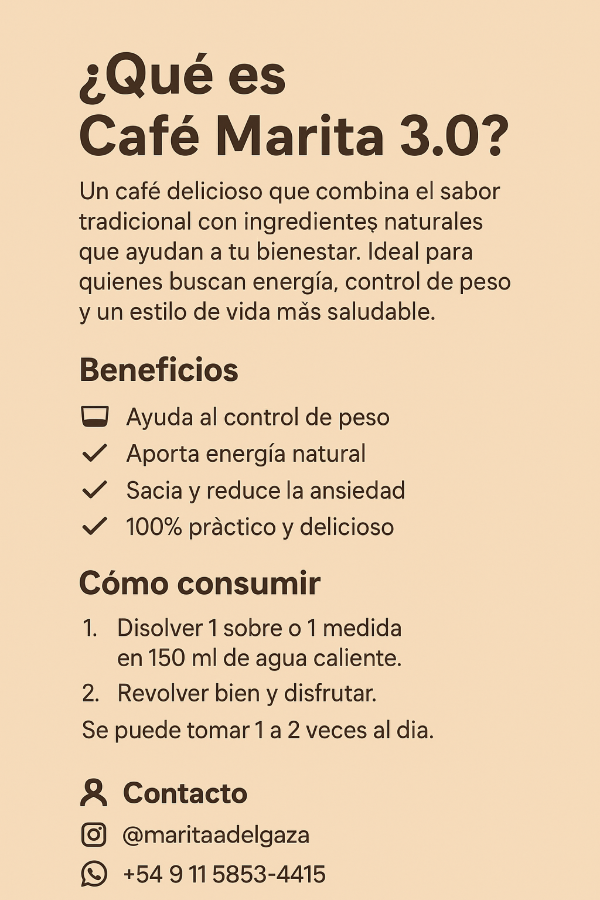 El café Marita 3.0 es una variante de café que ha ganado popularidad por sus beneficios adicionales. Permíteme compartir contigo algunos detalles sobre este café y sus propiedades: